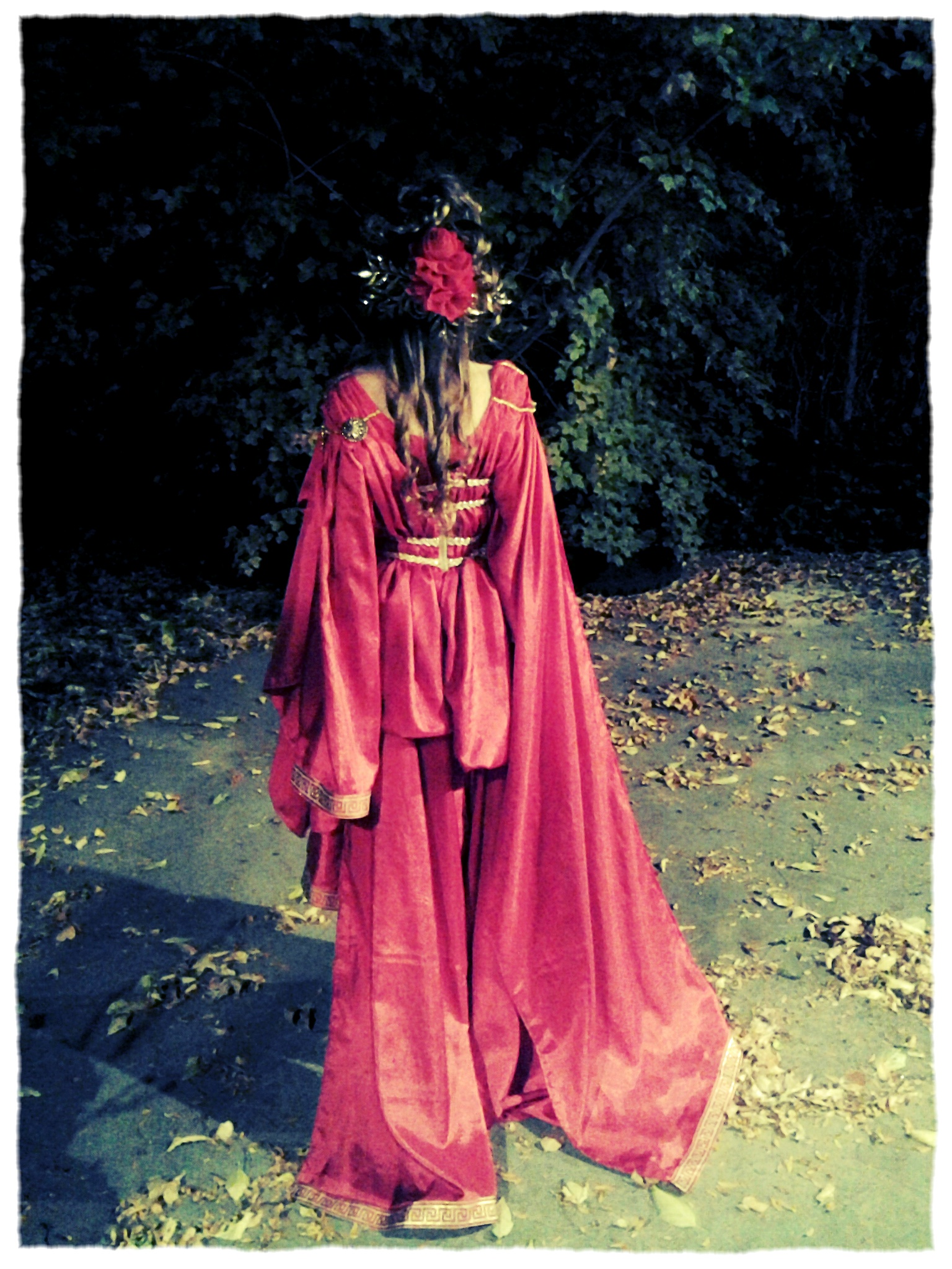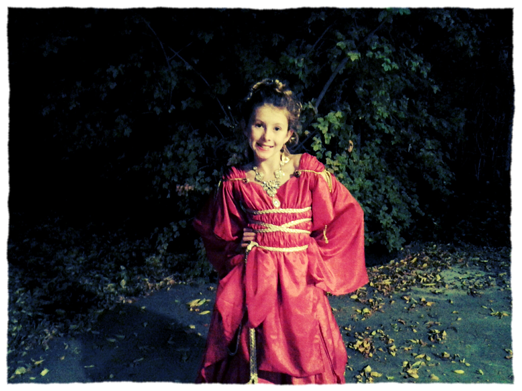 What I imagined to be simple, ended up being a near nightmare…I spent a ton of time hand-sewing lace & having my daughter help me try it on in-between adjustments. It was turning out beautiful but I couldn’t sit down in it.